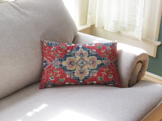 Red and Blue Medallion Pillow Cover, Covington Bettina Red Lumbar
