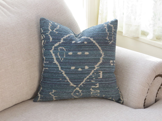 Denim Blue and Beige Tribal Chenille Pillow Cover