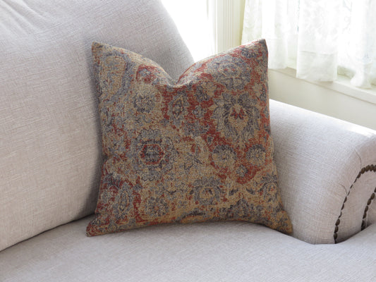 Royal Blue & Orange Medallion Pillow Cover, Carpet Style Chenille Tapestry