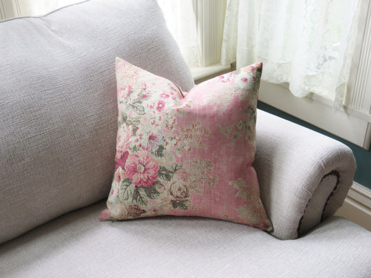 Pink Floral Pillow Cover, Vintage Look Roses