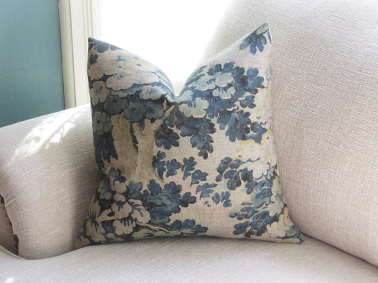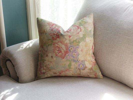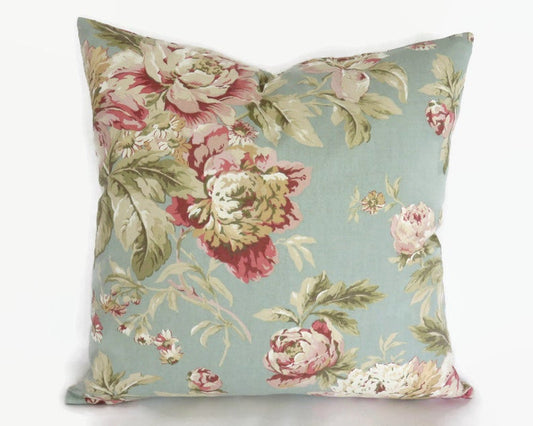Blue and Pink Floral Pillow Cover, Waverly Fleuretta in Mist