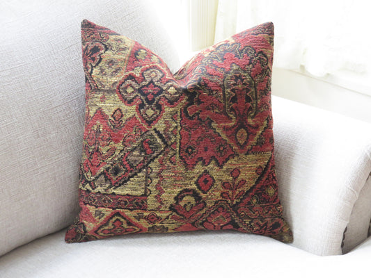 Red, Black and Tan Tribal Pattern Chenille Pillow Cover