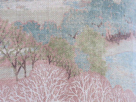 Watercolor Landscape Pillow Cover, Trees and Hills in Terracotta, Green, and Blue Tones