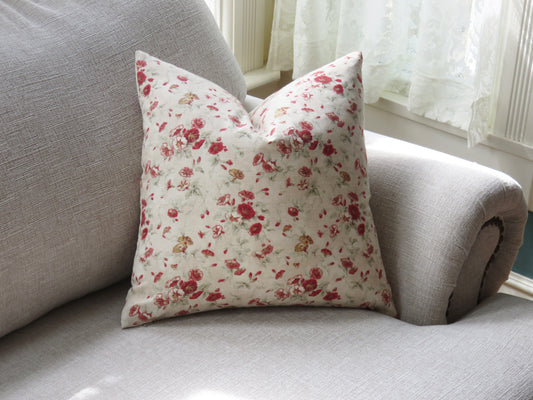 Fairhaven Rose Pillow Cover - Waverly Country Fabric, Red and Cream Morning Glory Floral