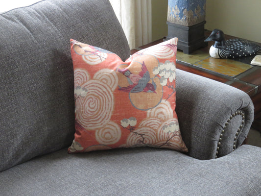 Spice Orange Asian Birds Pillow Cover, Kyomi in Spice
