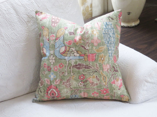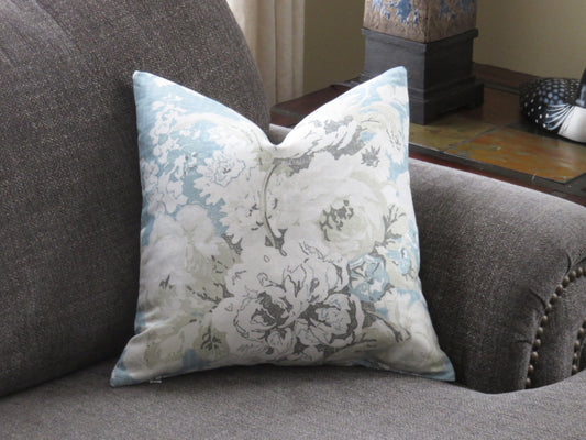 Blue and Pink Floral Pillow Cover, Waverly Fleuretta in Mist