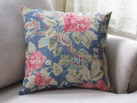 Blue Floral Pillow Cover, Waverly Afterglow in INdigo, with Red and Pink