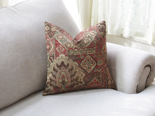 Red, Black and Tan Tribal Pattern Chenille Pillow Cover