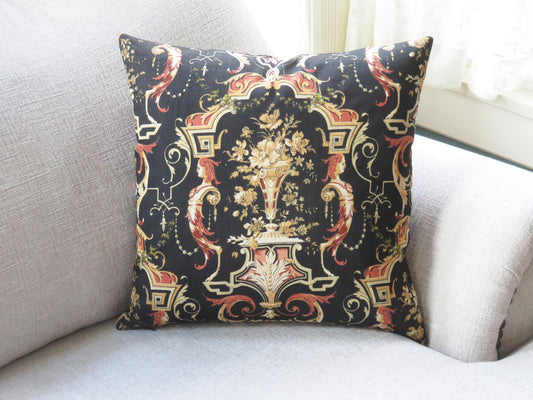 Neoclassic Urn in Orange & Black Style Pillow Cover