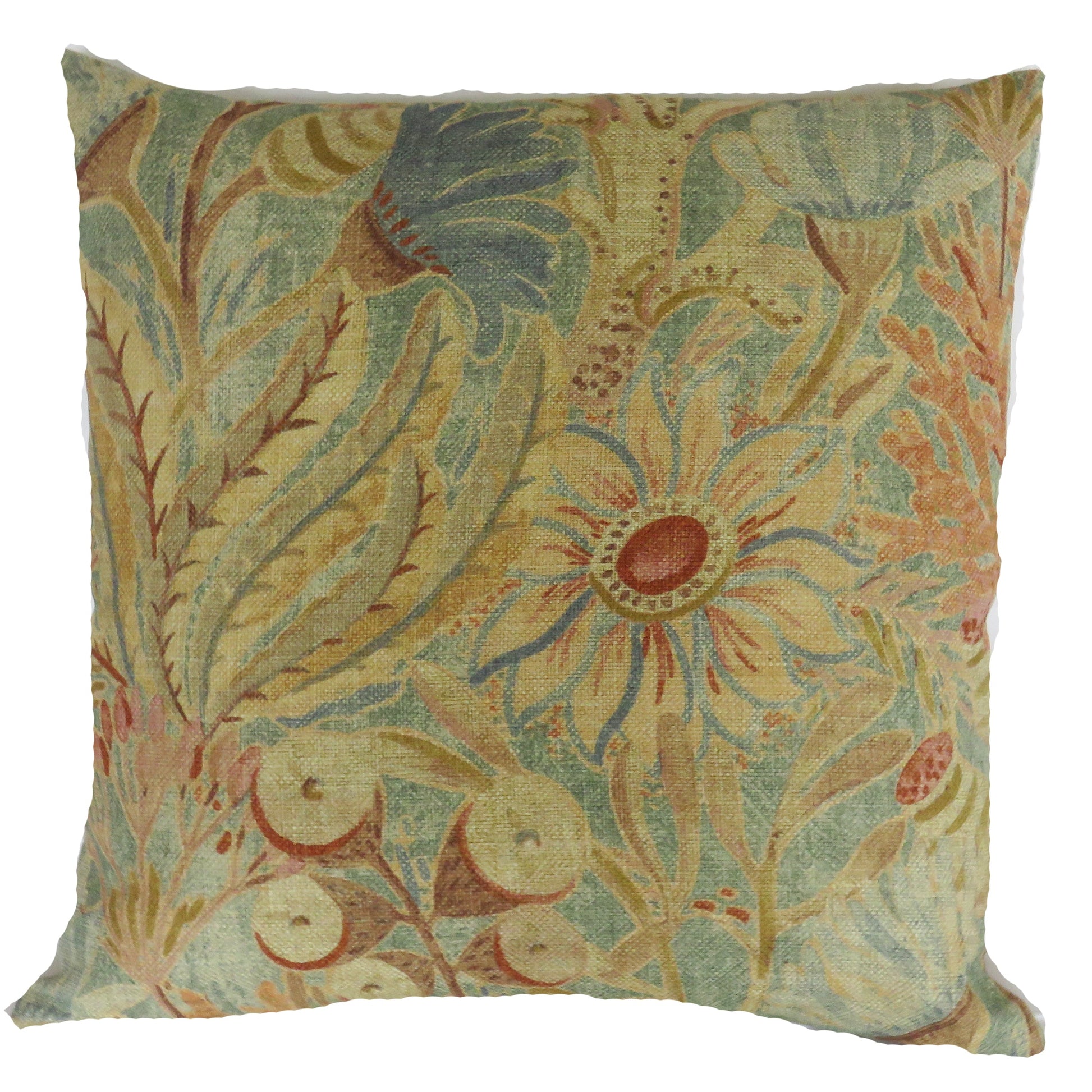 Colorful Fantasy Floral PIllow Cover in Blue, Orange, Gold, Aqua