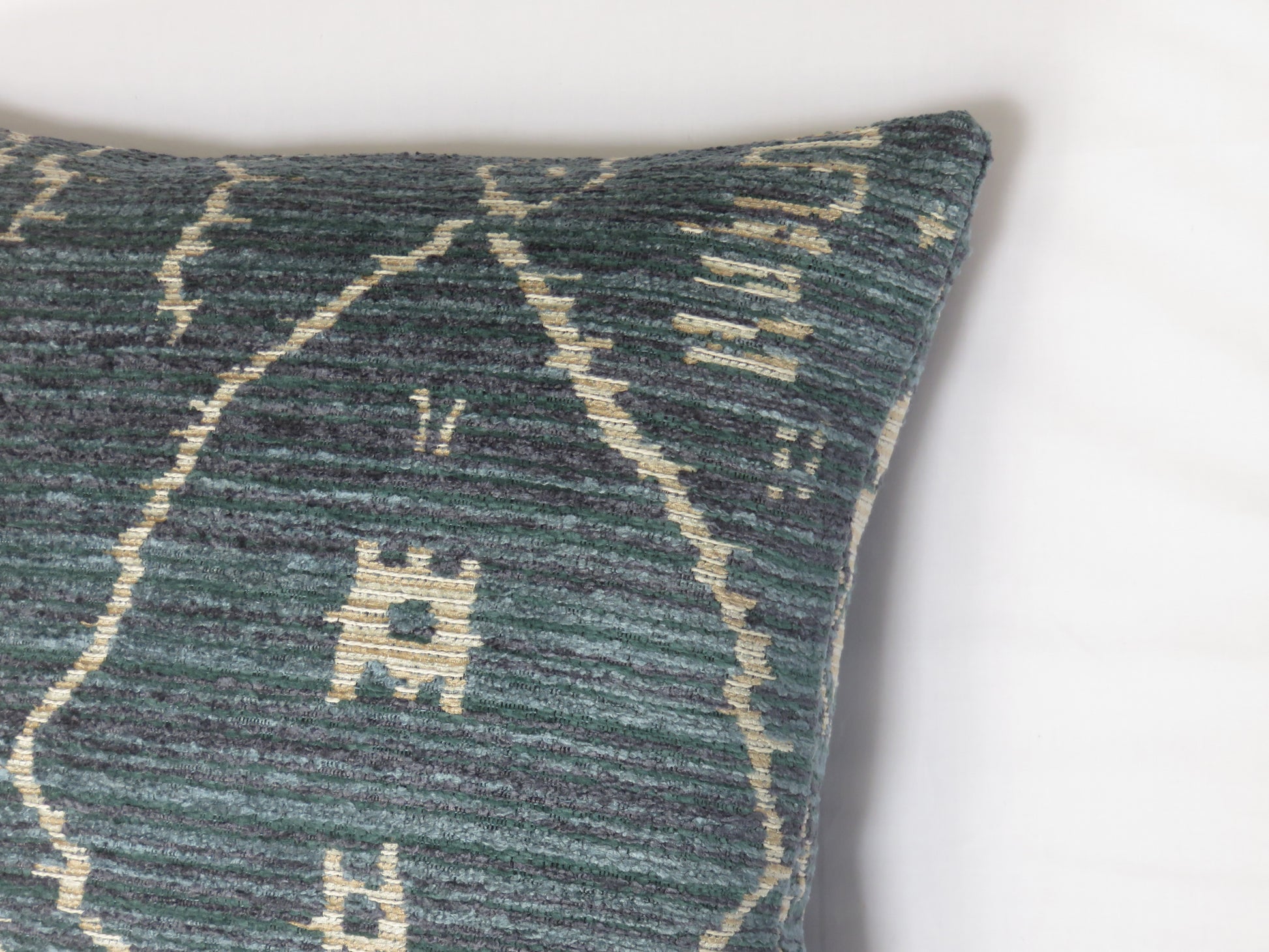 Denim Blue and Beige Tribal Chenille Pillow Cover